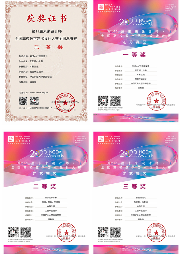 近日,第十一届“未来设计师·全国高校数字艺术设计大赛(NCDA)”颁奖典礼落下帷幕,机电与材料工程系工业设计专业共有9件学生作品脱颖而出,荣获全国赛三等奖1项,江苏赛区一等奖2项、二等奖3项、三等奖3项,机电系教师潘雅璇获评优秀指导教师。