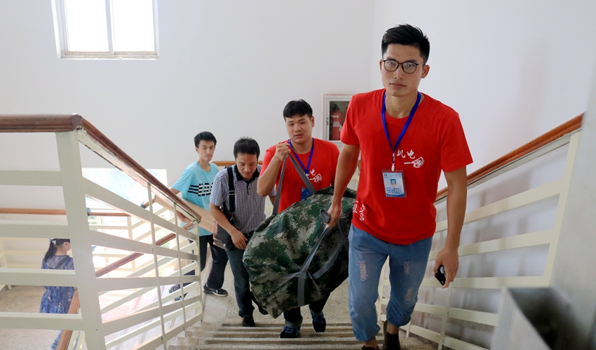 在校内迎新方面,院学生会在文昌校区北门、西门等地点设立了新生报到咨询点,为前来的报道的新生指引道路。而在新生报到的嘉园实验大楼,院学生会设立了专门的咨询服务点,为新生及其家长进行答疑解惑,迎新志愿服务者们服务热情、细心周到,迎新现场井然有序,气氛热烈。同时,各系在嘉园实验大楼分别设立了迎新志愿服务点,采取“一站式报到”的方式,迎新志愿服务者们带领新生办理报到手续,引导新生缴费,办理校园卡,领取军训服装,分配宿舍等相关事宜。在办理完一系列入学手续后,各系迎新志愿服务者会带领新生前往分配好的宿舍。在迎新志愿服务者的陪同下,真正实现新生报到程序简洁务实,注重实效,真切的让新生及家长感受到学院的贴心与温暖,让家长放心,让新生暖心。