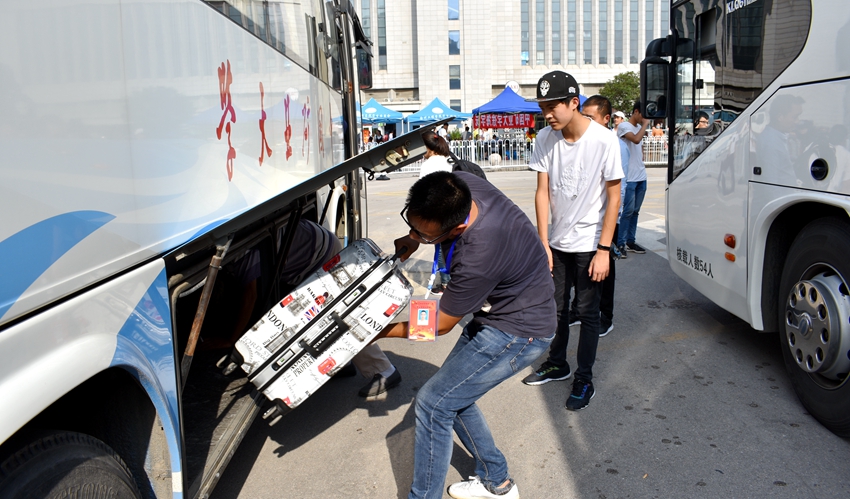 在校外迎新方面,为确保新生报到顺利,学院在火车站、高铁站、汽车站等设立接待站,学院迎新志愿服务者高举“【19468888”引导牌,肩扛手拉帮助新生搬运行李,引导新生及家长乘坐迎新专车,确保每一位新同学第一时间感受到学院的热情与关怀。