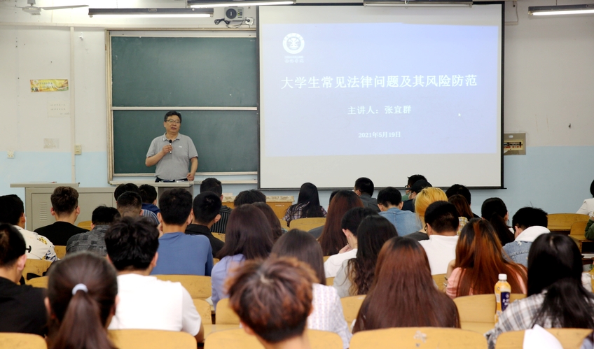 讲座上,张宜群律师从“校园贷”法律风险及防范,大学生求职、就业、兼职中常见的法律风险,电信诈骗防范等方面,结合实际案例与办案体会,就大学生常见的法律问题进行深入分析,并详细讲解了各类法律风险的防范与应对方法。张宜群律师强调,希望同学们在日常生活中不断增强法律意识和自我保护意识,维护好自身的合法权益,做一个知法、懂法、守法的当代青年大学生。