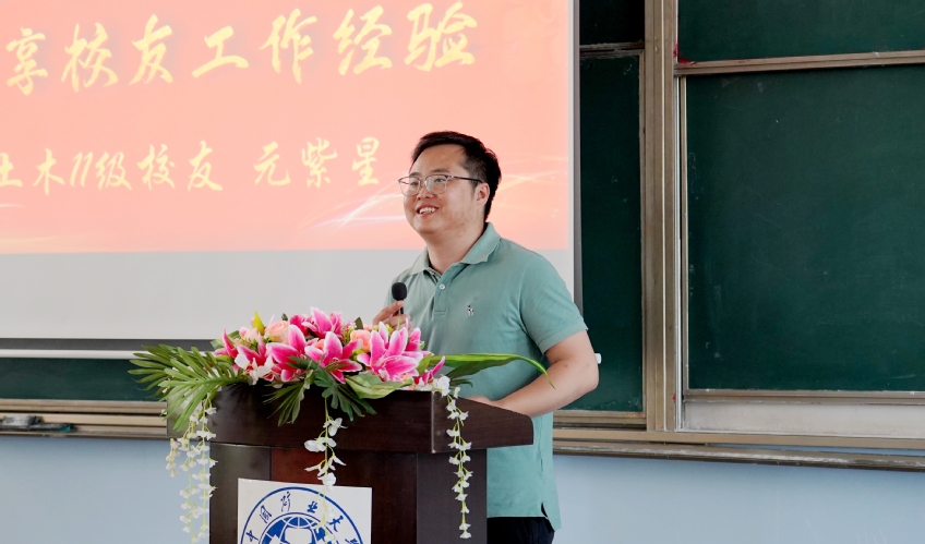 土木工程11级校友,石家庄校友会理事、副秘书长,诚筑建设有限公司总经理元紫星作专题报告,分享作为校友工作代表的经验和感悟,他建议大家深入了解学院校友工作,增强服务校友、服务母校的责任感和使命感,积极投入到校友联络和招生宣传工作中去。