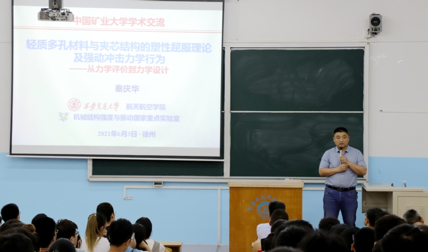 为了解科学研究的奥秘,提高学生的学习积极性,徐海学院机电系于6月3日下午在一南101举办“轻质多孔材料及夹芯结构的塑性屈服理论与冲击动力学行为——从力学评价到力学设计”专题学术讲座。此次讲座邀请西安交通大学教授、博士生导师秦庆华主讲,机电系主任魏超主持。