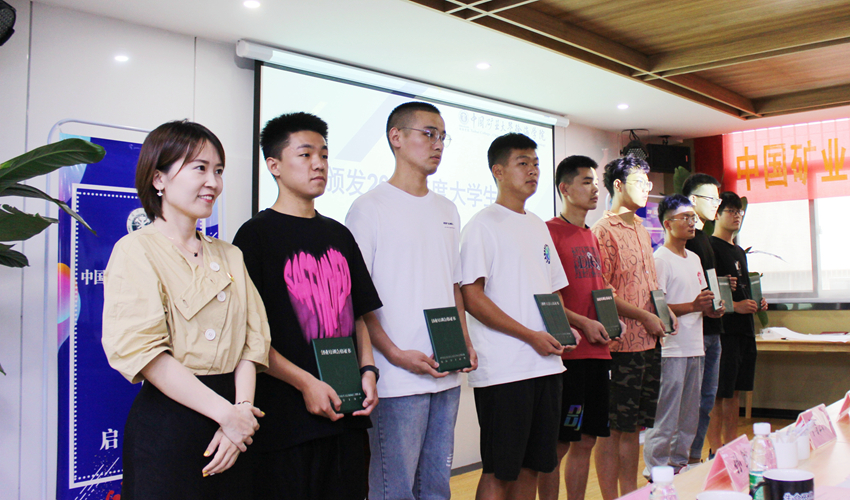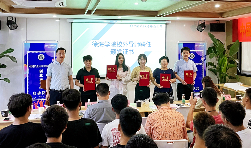 仪式最后,徐州市大学生创业服务中心副科长张雪梅为学生代表颁发2020年度大学生创业证书,学工处处长时鹏飞为校外导师颁发聘任证书,团委书记张露为校外创新创业基地颁发证书并授牌。