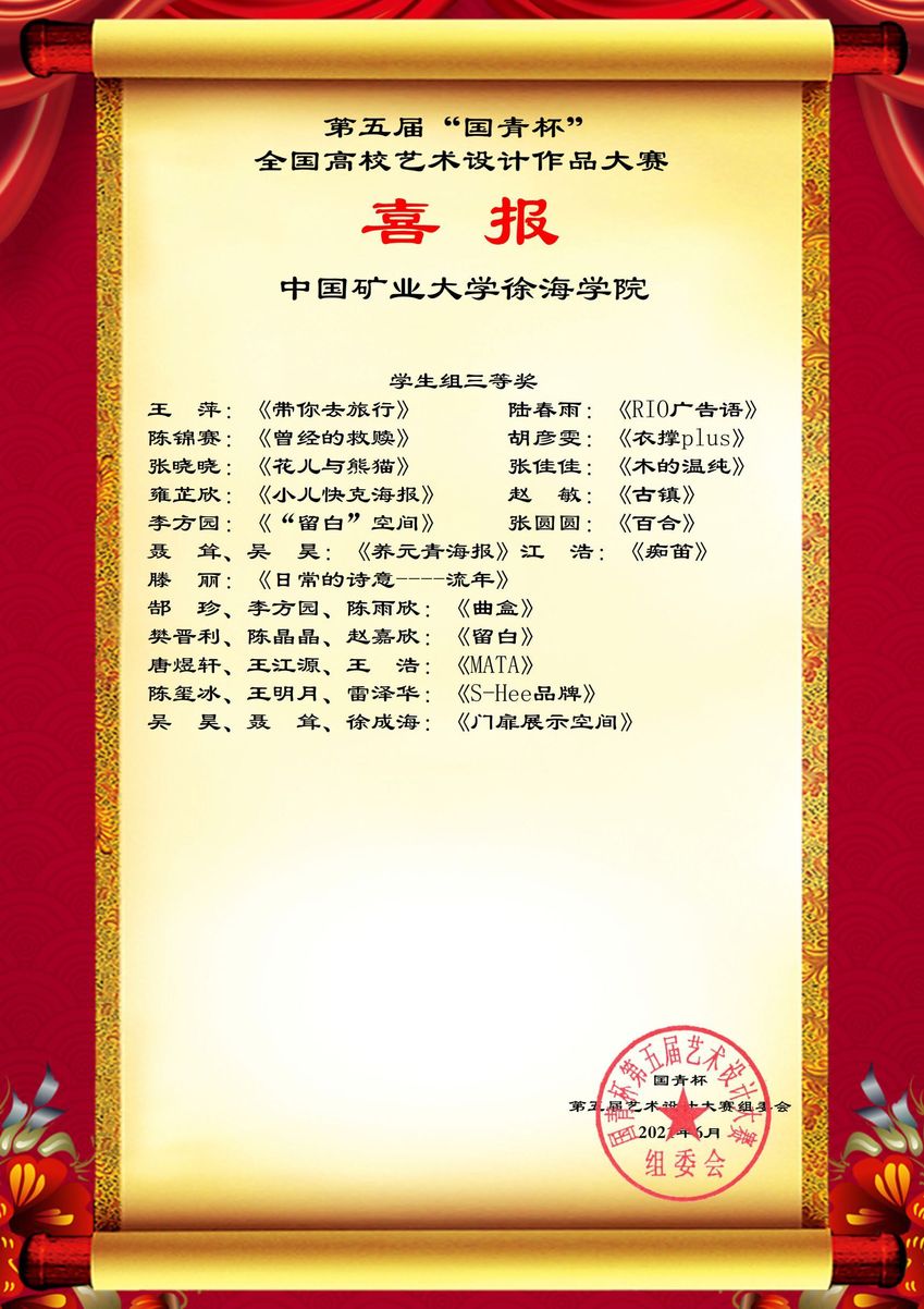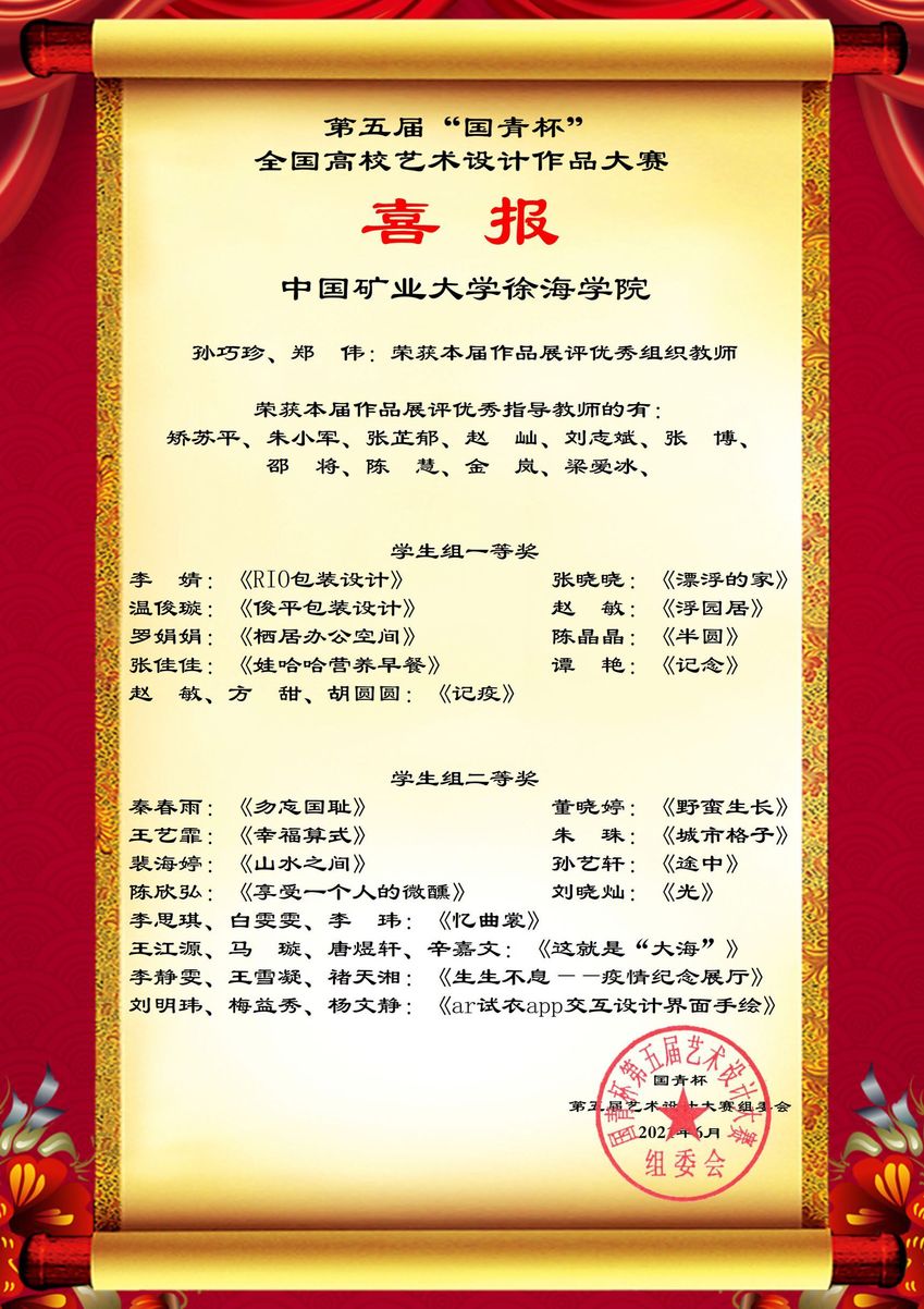 徐海学院在第五届“国青杯”全国高校艺术设计作品大赛中喜获佳绩