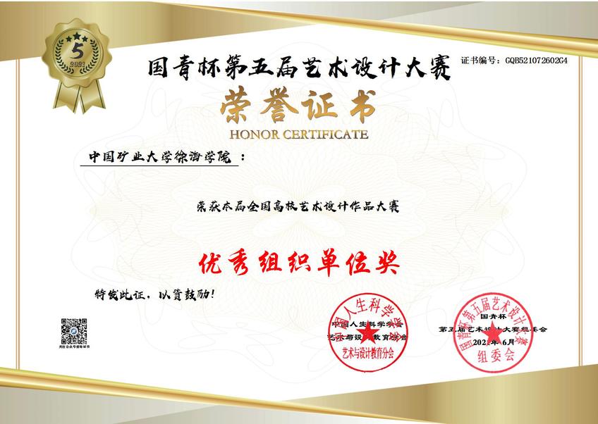 近日,第五届“国青杯”全国高校艺术设计大赛作品展评获奖名单揭晓,徐海学院选送的作品通过组委会层层评选,从全国众多参赛作品中脱颖而出,并取得佳绩。其中,文艺系学生获一等奖9项、二等奖12项、三等奖18项,学院获优秀组织单位奖,孙巧珍、郑伟两位老师被评为作品展品优秀组织教师,梁爱冰、张芷郁、刘志斌、赵屾四位老师被评为作品展评优秀指导教师。