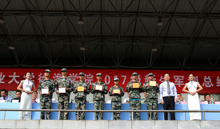大会在学院国旗护卫队整齐划一的迎国旗步伐中拉开序幕,全场奏唱国歌,五星红旗迎风飘扬。张万红院长首先为具有光荣传统的73089部队赠送了锦旗,承训部队营长王世伟接受锦旗。接着,应鹏展副院长宣读了《关于表彰我院2017级学生军训先进集体和优秀个人的决定》。授予机电系等3个系 “军训先进单位”荣誉称号;授予计算机系等4个系 “军训优胜单位”荣誉称号;授予周雨曦等6人“军训优秀指导教师”荣誉称号;授予会计17-1班等13个班级“军训先进班集体”荣誉称号;授予 216名同学“军训先进个人”荣誉称号。随后,曹巍书记为军训先进单位代表颁发奖牌,承训部队教导员姜森为军训优胜单位代表颁奖,应鹏展副院长为军训先进班级代表颁奖,周丽丽副院长为军训优秀指导教师颁奖,副院长于忠华为军训先进个人代表颁发了荣誉证书。