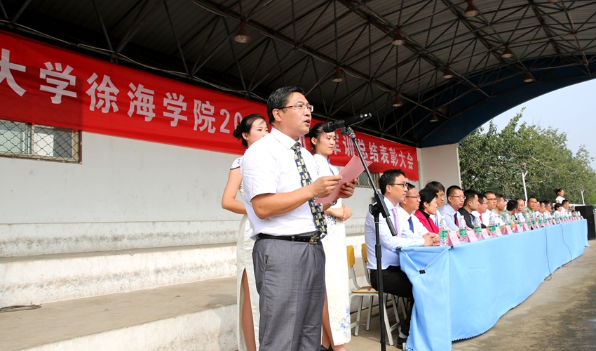 9月28日上午,徐海学院2017级学生军训总结表彰大会在中国矿业大学文昌校区运动场顺利举行。73089部队营长王世伟、教导员姜森,徐海学院董事长、院长张万红,党委书记曹巍,副院长应鹏展、周丽丽,党委副书记戎辉,副院长于忠华,学院各系、部、处室负责人出席了大会。承训部队47名官兵、各系学工办主任、2017级新生辅导员和全体新生参加了大会。大会由院党委副书记戎辉主持。