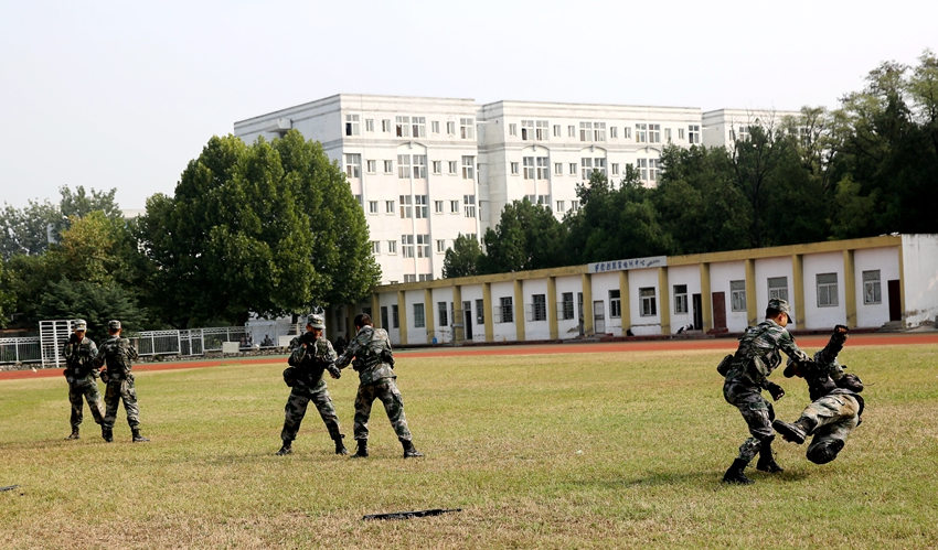 大会进行了分列式和军训科目展示,由承训部队于飞副教导员负责指挥,7个系的学生方阵迈着整齐的步伐,喊着洪亮的口号,依次经过主席台,接受学院领导和部队首长的检阅。分列式后,由参训学生组建的军体拳、匕首操表演科目方队展示了学院2017级学生战酷暑、历风雨,不怕苦、不怕累的高昂斗志,由承训官兵代表带来的战术演练展示,精彩的格斗、逼真的战术对抗赢得大家的阵阵掌声。大会在庄严的中国人民解放军军歌声中落下帷幕。