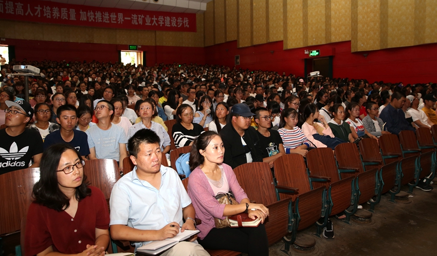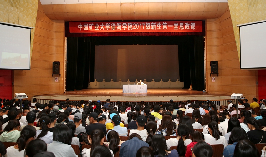 下午14时和16时,曹巍书记分两场为新生上课,每堂课约100分钟。内容主要围绕“中国矿业大学的办学历程与徐海学院的人才培养”以及“从习近平总书记七年的知青生涯看当代大学生如何树立‘三观’”展开。他首先介绍了中国矿业大学的前身今世,数次的搬迁、易名,历尽艰辛,颠沛流离,但依然薪火相传,弘歌不辍。经过一代又一代矿大人的努力奋斗,铸就了中国煤炭高等教育的一流品牌和独特的精神文化品格。重点介绍了特色体育文化和“三个永远”的采矿精神。强调了体育运动在育人过程中的重要意义,希望大家做一个强健体魄、提升自信、砥砺意志、激励终生的大学生。