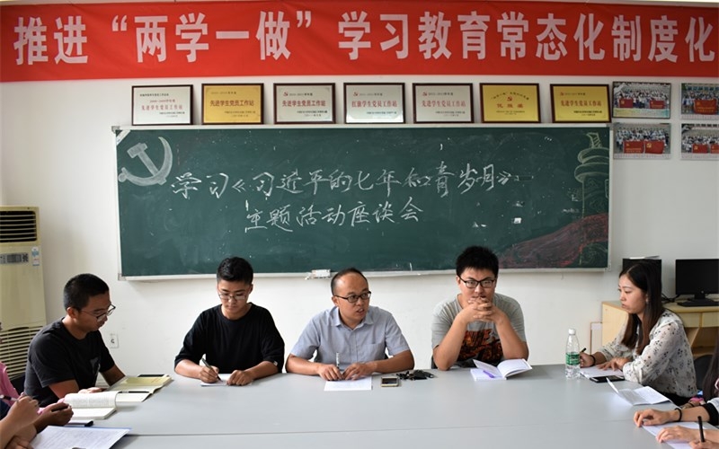 在随后的交流环节上,戎书记就国内外的现有政治制度、文化和国家现状进行了比较,深入探讨了社会主义制度的优越性。他提出要向习近平总书记坚定的信念和不屈的精神学习,坚持“四个自信”:中国特色社会主义道路自信、理论自信、制度自信、文化自信。同时,戎书记也对我院学生给予厚望,希望同学们可以提高政治敏感性、责任感以及使命感,作为国家安定的主体积极维护社会的稳定。接着,张露老师就生活和工作两个方面分享了自己的见解。她以“知足常乐,不断学习,微笑人生”总结并且倡导同学们学习习近平总书记艰苦奋斗、扎根基层的精神。接下来,外语系学工办主任王广平、机电系团学指导老师周雨曦和院学生会主席庞丽君也就此次学习活动分享了彼此的见解和认识。他们共同强调了读书的重要性,呼吁广大同学积极利用好学校资源,肯吃苦勤钻研,并希望在场大学生做到“勇于追求、勤于钻研、敢于吃苦、完善规划”的精神品质,做到重辨证、办实事、深入学习,为完善自我修养提高自我马克思主义理论高度,为学院争光添砖加瓦。