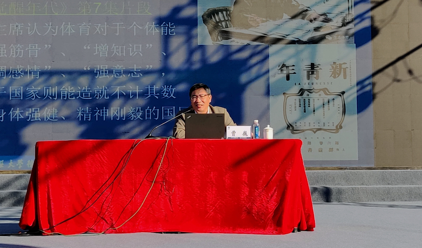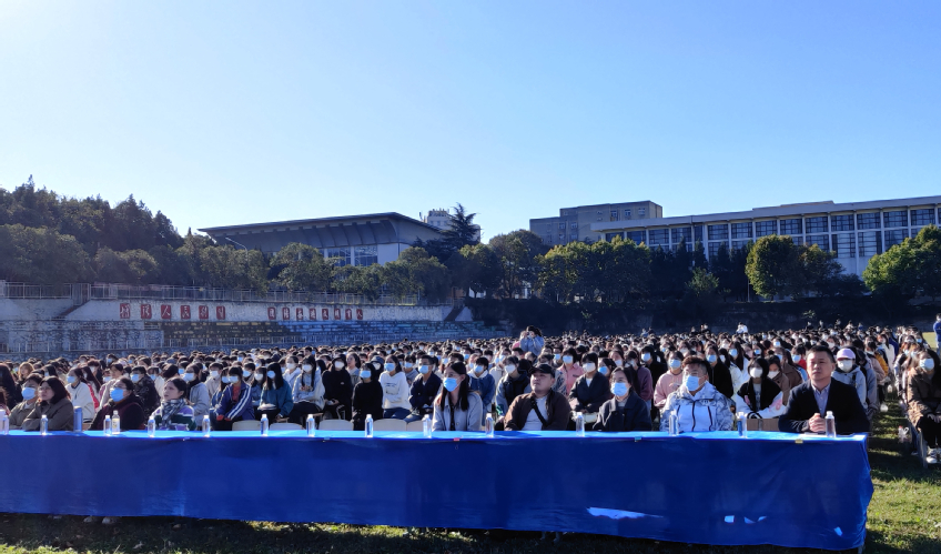 10月17日,学院党委书记曹巍、副院长应鹏展、党委副书记戎辉在学院田径场为2021级新生上第一堂思想政治理论课。活动由学工处处长时鹏飞主持。
