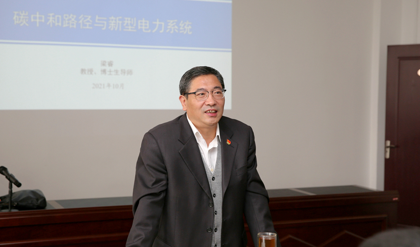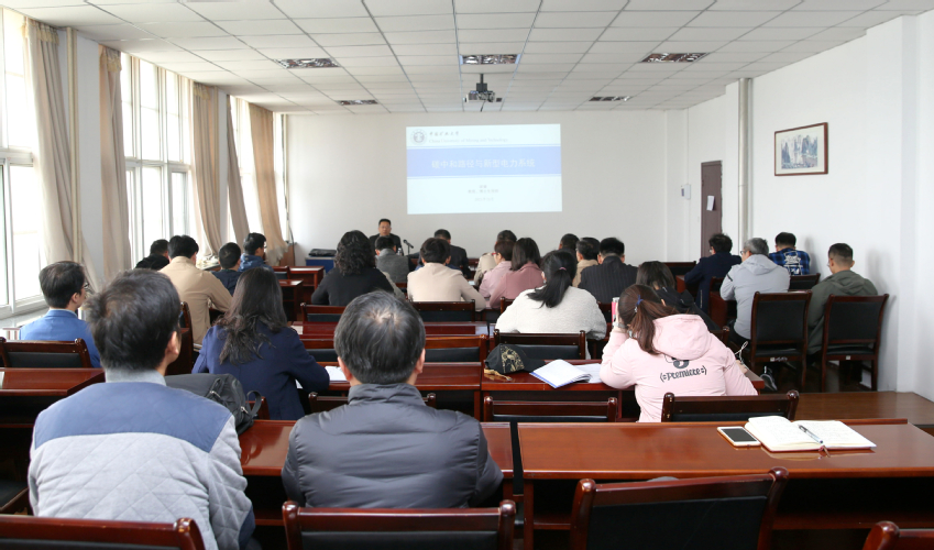 10月19日上午,徐海学院在主楼911会议室举办“碳中和路径和新型电力系统”学术交流讲座。讲座邀请中国矿业大学电气与动力工程学院教授梁睿主讲,学院党委中心组成员、理工科专业教师参加。讲座由党委书记曹巍主持。