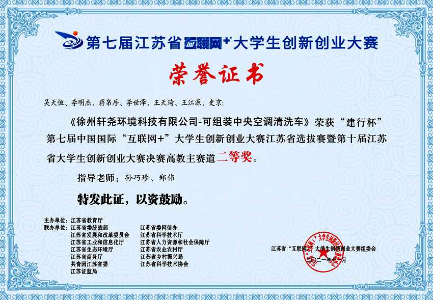 近日,第七届江苏省“互联网+”大学生创新创业大赛决赛落下帷幕。徐海学院参赛选手精心准备、勇于拼搏,经过激烈角逐,由学院孙巧珍、郑伟老师指导的“徐州轩尧环境科技中央空调清洗车”项目团队获得高教主赛道二等奖。