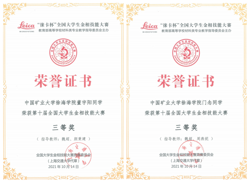 近日,第十届全国大学生金相技能大赛复赛、决赛在上海交通大学举行。来自全国370所高校、371支代表队的1109名选手参加了比赛。3名徐海学子从校赛50余名参赛选手中脱颖而出,其中,董宇阳、门念同学取得全国个人三等奖的好成绩。