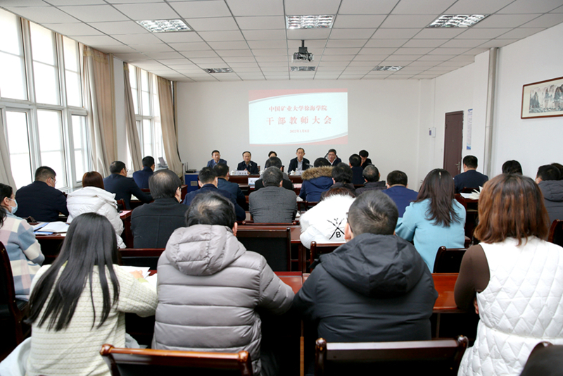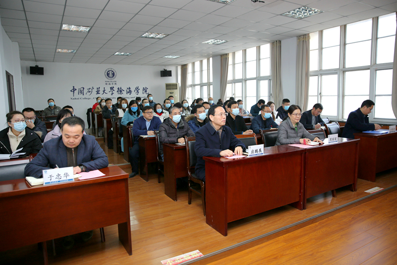 1月8日上午,徐海学院在主楼911会议室召开干部教师大会,宣布校党委关于调整徐海学院党委书记、副书记的决定。校党委书记刘波,校党委常委、校长助理、徐海学院董事长、院长张万红,校党委常委、组织部长张万海,组织部齐宪涛同志出席会议。徐海学院原党委书记曹巍,党委书记戎辉,副院长应鹏展、周丽丽,副院长于忠华,党委副书记邢雅伟,院长助理徐海波,系部处室主要负责人,教职工党支部书记,副高级职称教师代表,系学工办主任参加会议。会议由张万红同志主持。