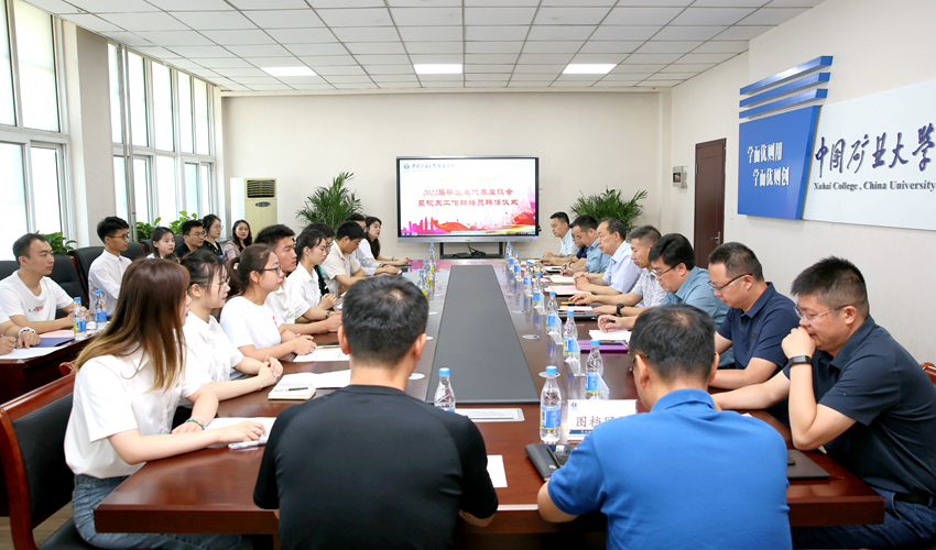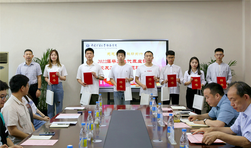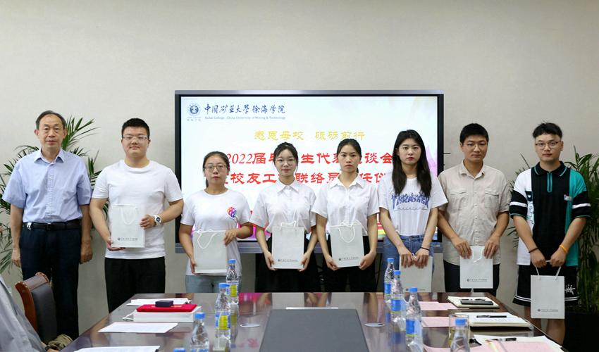 6月7日上午,徐海学院2022届毕业生代表座谈会暨校友工作联络员聘任仪式在主楼907会议室举行。校党委常务、校长助理、徐海学院院长张万红,党委书记戎辉,常务副院长于忠华,党委副书记邢雅伟,各职能部门负责人及2022届14名毕业生代表、校友工作联络员参加了座谈会。活动由党委副书记邢雅伟主持。