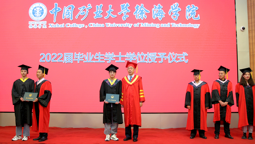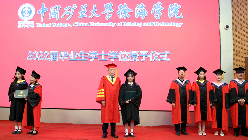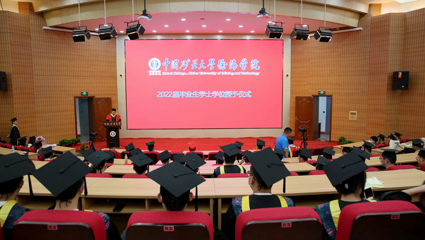 6月14日,徐海学院2022届毕业生学士学位授予仪式在文昌校区电教馆举行。学院领导张万红、戎辉、于忠华、应鹏展、邢雅伟、徐海波、周丽丽,各系主任、副主任及教师代表出席仪式,为学院2041名本科生授予工学、管理学、经济学、文学及艺术学学士学位。