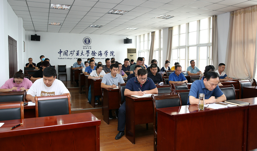 8月26日下午,徐海学院在主楼911会议室召开干部教师大会暨新学期工作部署会,学院领导班子全体成员出席会议,系部处室主要负责人,教职工党支部书记,副高级职称教师代表,各系学工办主任、综合事务主管参加会议。会议由常务副院长于忠华主持。
