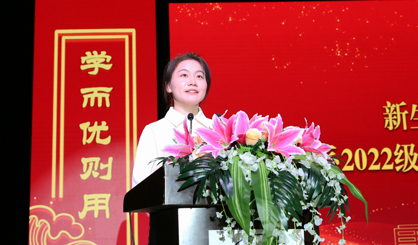 机电系副主任、副教授仝军令,文艺系2011届毕业生、徐州启迪之星科技企业孵化器有限公司副总经理孙婉璐,信电系团总支副书记、2019级学生邵杰,机电系2022级新生佟梦晴分别作为教师代表、校友代表、在校生代表、新生代表发言。仝军令老师深刻剖析了“人生三件事”的内在逻辑,勉励新生在学习中增长知识、锤炼品格,在实践中增长才干、练就本领。孙婉璐校友分享了自己的求学历程和奋斗故事,激励同学们做敢于接受挑战的“追梦者”,在徐海校园里逐梦圆梦。邵杰同学结合自身成长经历,鼓励学弟学妹们立目标、树规划、勤向学、勇攀登,以青年昂扬之姿态再谱新篇。佟梦晴同学号召全体新生立鸿鹄之志,以勤勉之舟,渡学业之海,脚踏实地走好四年求学路。
