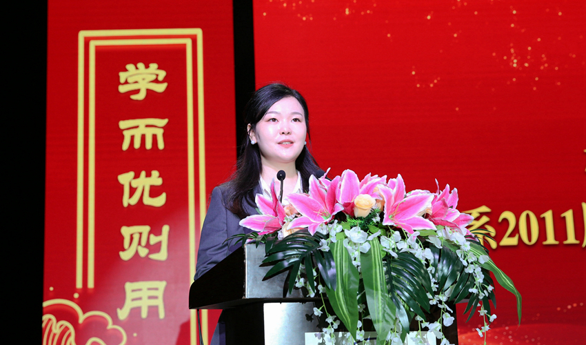 校友代表、文艺系2011届毕业生、徐州启迪之星科技企业孵化器有限公司副总经理孙婉璐发言