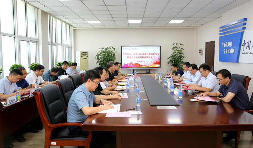 根据2022年江苏省教育厅全省高校常态化安全检查工作部署,9月21日下午,以南京医科大学党委常委、副校长沈瑞林为组长,南京医科大学保卫处处长臧延金、中国药科大学保卫处处长范素文、南京晓庄学院保卫处处长崔伟、江苏经贸职业技术学院保卫处处长薛敏为组员的全省高校常态化安全检查工作组一行5人来院开展现场检查。学院在主楼907会议室召开集中会议,院党委书记戎辉、常务副院长于忠华、副院长应鹏展、党委副书记邢雅伟、副院长徐海波出席会议。会议由于忠华主持。