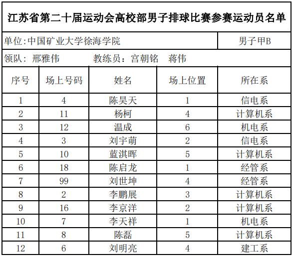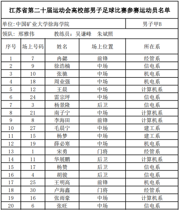 近日,四年一届的江苏省第二十届运动会高校部比赛落下帷幕。徐海学院各代表队奋力拼搏,男子足球队、女子篮球队、男子排球队分别取得全省高校第六名、第六名、第七名的好成绩。学院代表队在省运会赛场上彰显了青春澎湃的体育精神、昂扬向上的顽强斗志和奋力拼搏的当代大学生风采,祝愿运动健儿们在今后的比赛中再接再厉、再创佳绩!