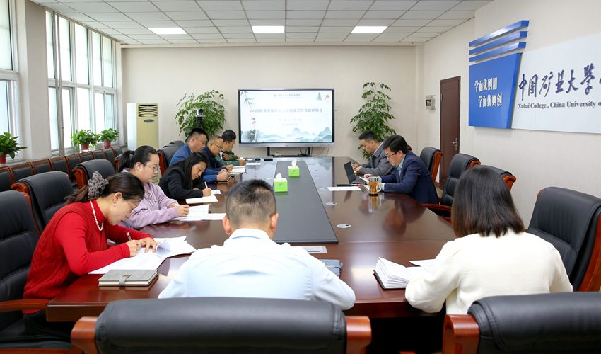 为进一步做好秋季学期学生心理健康教育工作,防范学生心理危机事件发生,持续、有效、及时地关注学生心理健康状况,10月7日上午,徐海学院在主楼907会议室召开2022秋季学期学生心理健康工作专题研判会。党委副书记邢雅伟、学工处处长时鹏飞、各系学工办主任、院学工处心理中心全体专职教师参加会议。会议由学工处处长时鹏飞主持。