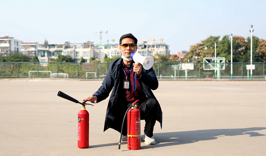 活动中,校保卫处申晓光老师详细讲解了灭火器的内部结构、工作原理、操作步骤、注意事项及火灾逃生技巧,并现场演示了灭火器操作方法和使用技巧。随后,全体参加演练人员按照操作要领练习使用灭火器,并分批次进行了灭火实操。