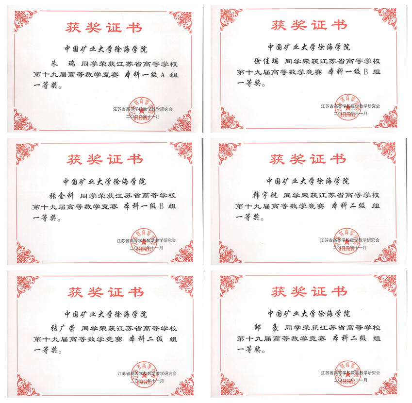 本届赛事由江苏省教育厅、江苏省高等学校数学教学研究会主办、扬州大学承办,来自全省一百多所高校的近二万名同学分为本科一级A、本科一级B、本科二级、专科四个类别参加了竞赛。在学院的大力支持下,由数学骨干教师组成的指导团队积极宣传、动员、选拔学生参加比赛,采用线上、线下相结合的方式对参赛学生开展有针对性的培训、辅导、答疑工作。在老师们的悉心指导,参赛学生刻苦练习、沉着应赛,最终取得优异成绩。
