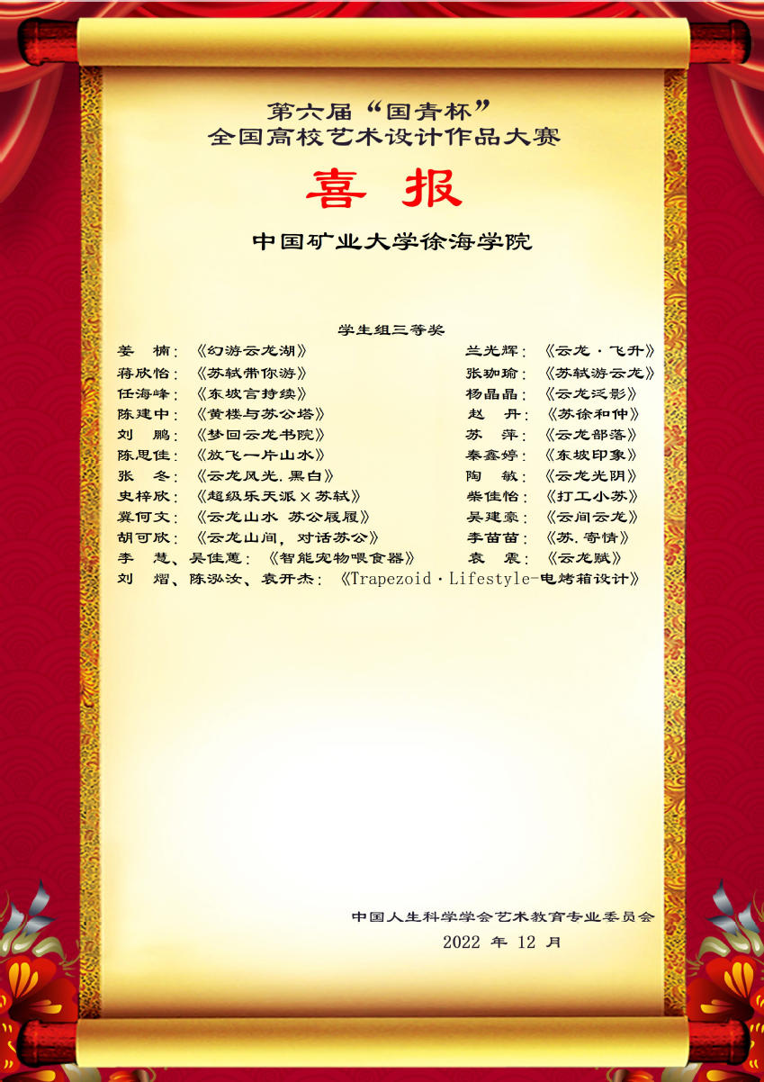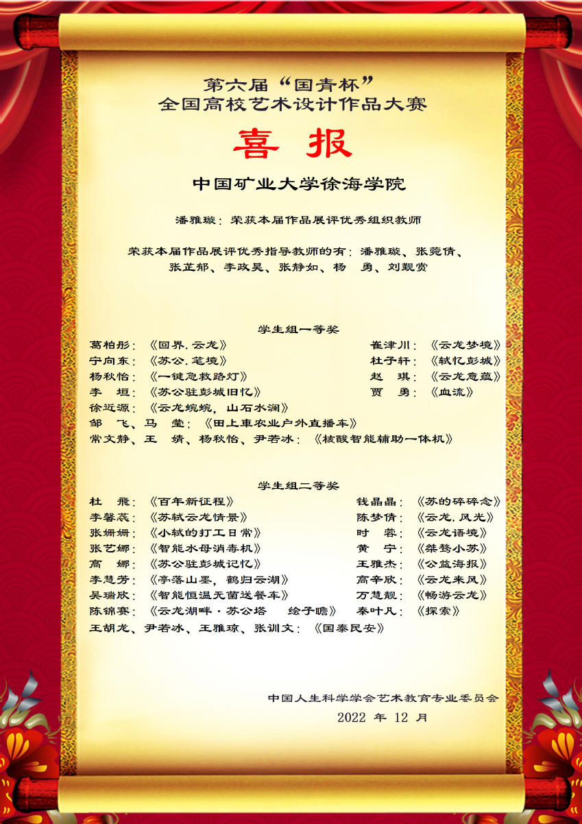 徐海学院在第六届“国青杯”全国高校艺术设计作品大赛中喜获佳绩