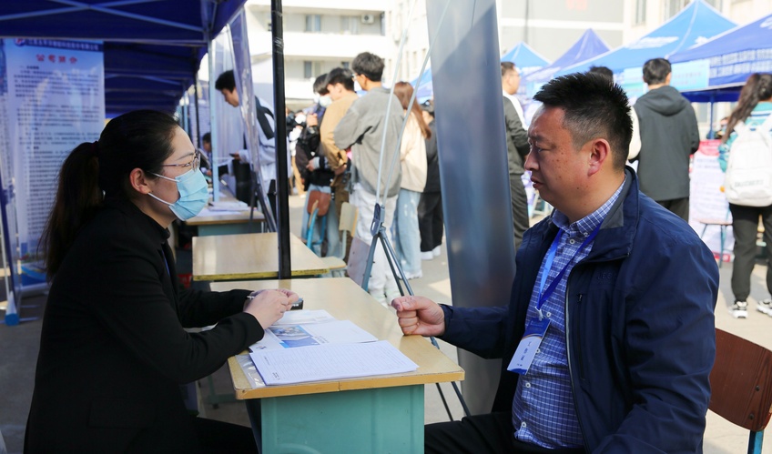 学院党委书记熊志忠,党委副书记邢雅伟,相关职能部门负责同志,各系主任、副主任、学工办主任及毕业班辅导员到现场与用人单位深入交流,详细了解招聘单位岗位需求,并对毕业生进行就业指导和精准推荐。双选会现场还设置了简历工作坊、面试技巧提升、应征入伍和基层就业政策宣传等咨询处,开展了送岗直通车“直播荐岗”活动。