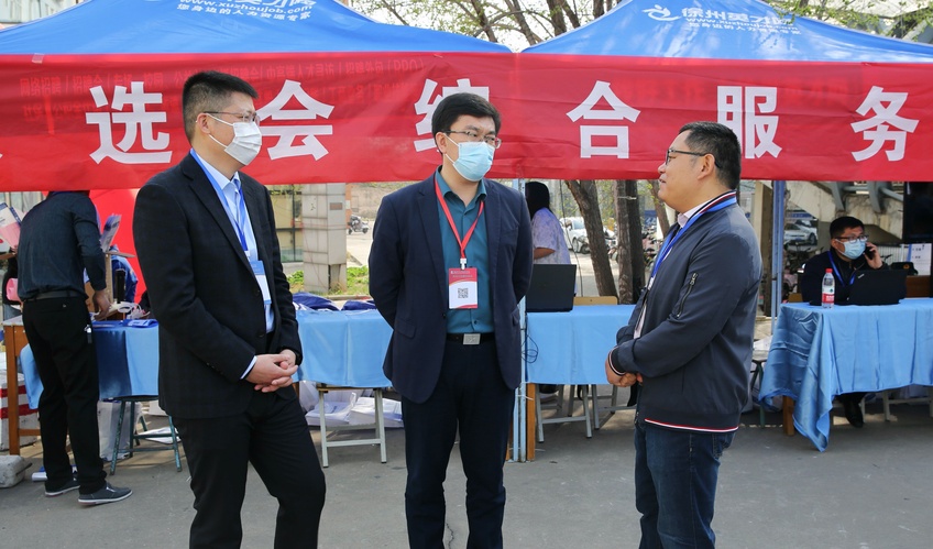 双选会得到了徐州市人社局及泉山区的大力支持,市人社局局长于洪亮,市人力资源和公共就业管理中心主任卢丰,泉山区政府常务副区长陈光,泉山区人社局局长陈倩亲临现场指导。