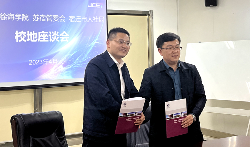 邢雅伟介绍了学院供需对接、订单式培养、实习实训等方面的情况,并与宿迁市人才服务中心主任赵鹏程共同签订了校地合作协议。