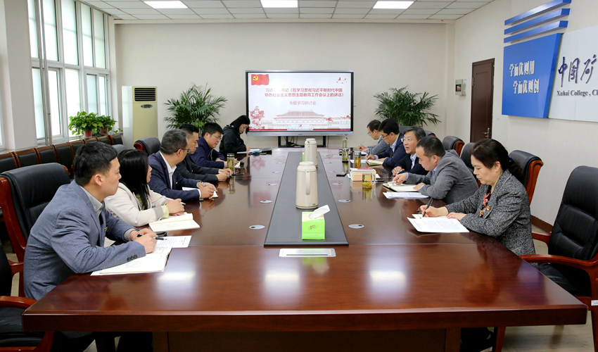 5月10日,徐海学院学习贯彻习近平新时代中国特色社会主义思想主题教育专题读书班在主楼907会议室开班。党委书记熊志忠主持开班仪式并作动员讲话和领学,学院党委理论学习中心组成员参加开班仪式。