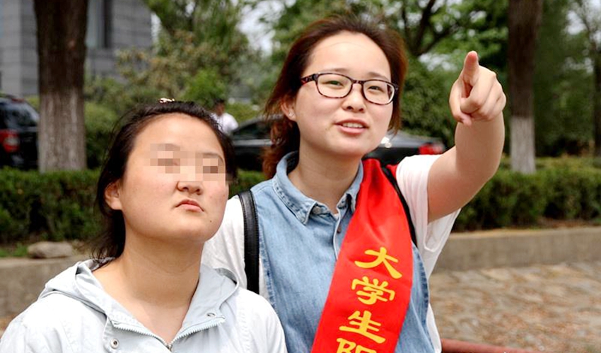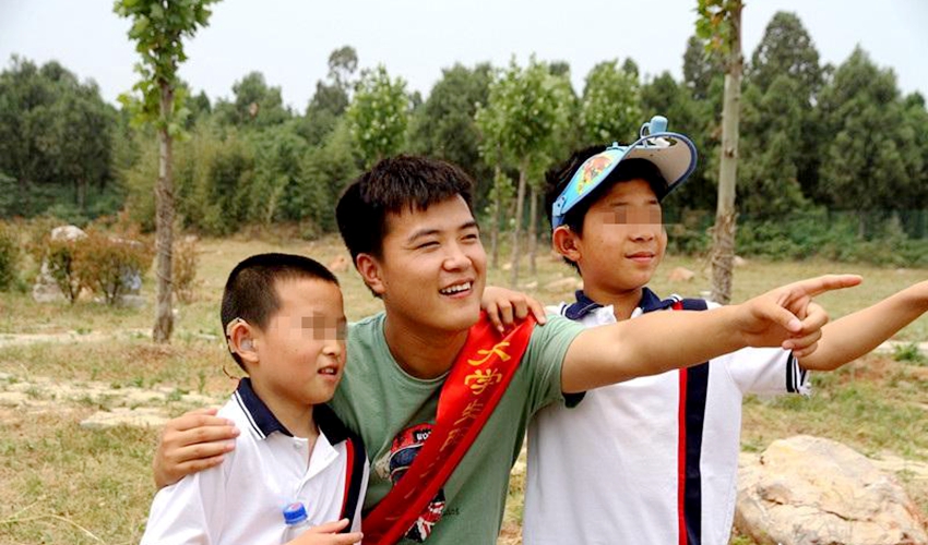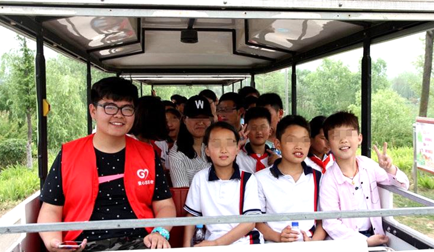 (徐州特教学校的残障儿童在学院志愿者的引导下游览督公湖)