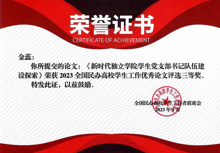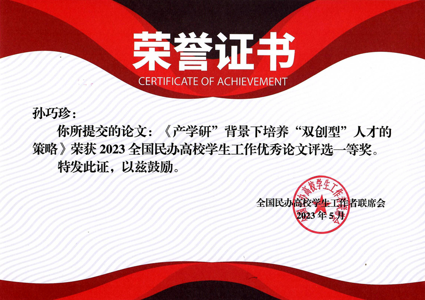 近日,第十届全国民办高校学生工作创新研讨会在湖北武汉顺利召开。徐海学院报送的《“产学研”背景下培养“双创型”人才的策略》(作者:建工系 孙巧珍)荣获2023年全国民办高校学生工作优秀论文评选一等奖、《新时代独立学院学生党支部书记队伍建设探索》(作者:学工处 金蕊)荣获2023年全国民办高校学生工作优秀论文评选三等奖。