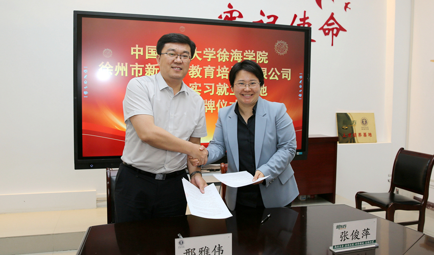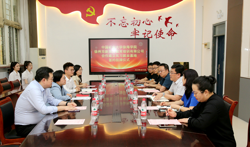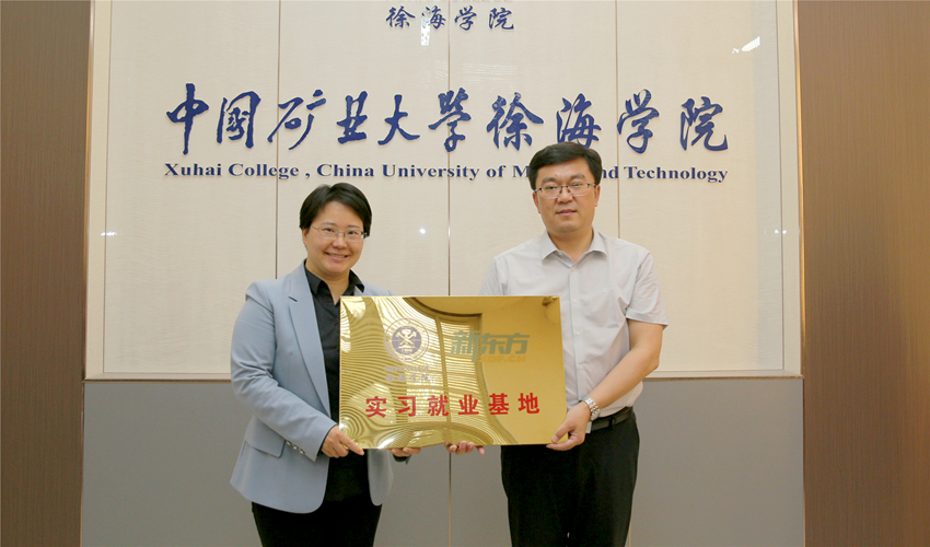 为积极响应教育部“访企拓岗促就业”专项行动号召,搭建校企交流对接平台,推进产教融合,广泛拓展毕业生就业渠道,5月16日下午,徐海学院与徐州市新东方教育培训有限公司在主楼104会议室举行校企合作建立实习就业基地签约授牌仪式。