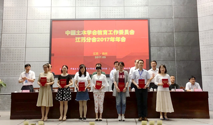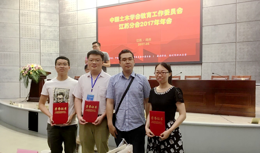 2017年5月26日至28日,中国土木学会教育工作委员会江苏分会2017年年会在扬州市职业大学召开,来自全省本科、高职院校等200余位专家教授、青年教师、优秀毕业生参加。学院建工系副主任谢伟老师带领两位青年教师及一名优秀毕业生代表参加。