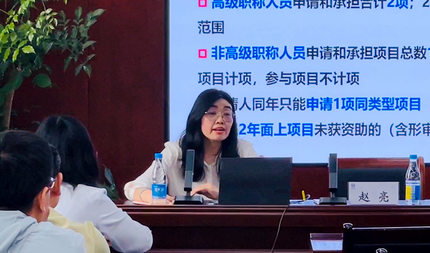 赵亮从项目分类概况、申报材料准备以及心得体会三方面作了深入浅出的讲解,并就科研项目的选题思路、研究内容及研究方法设计、语言凝练、撰写规范等内容进行了重点指导,帮助与会教师更加全面深入地掌握了科研项目的申请要求,从而系统梳理研究思路并完善申请书。
