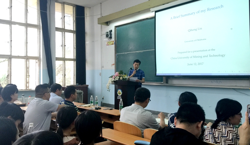 6月12日14:00,应徐海学院党委书记曹巍和经管系邀请,美国俄克拉荷马州立大学的经济学副教授刘其宏在主北三为学生开展“A Brief Summary of My Research”讲座。徐海学院党委书记曹巍出席讲座,经管系金融方向的任课教师、金融15级、会计14级学生参加讲座。讲座由经管系主任唐安宝主持。