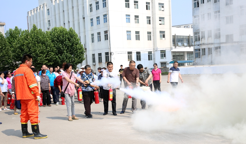 (参演人员使用灭火器进行灭火演练)