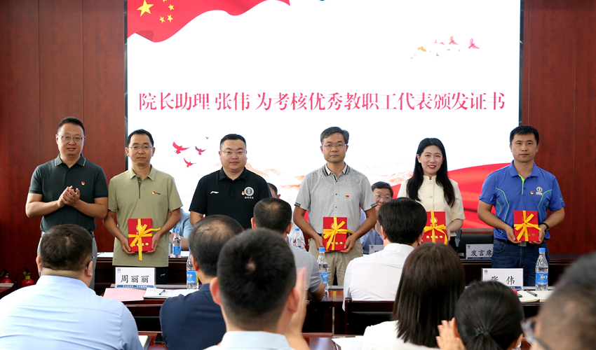 院长助理张伟为考核优秀的教职工代表颁发证书