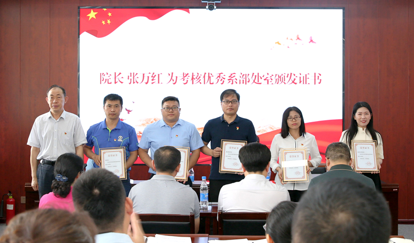 院长张万红为考核优秀的系部、处室颁发证书