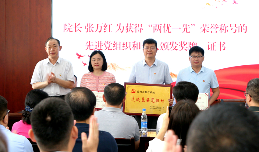 院长张万红为获得徐州市教育系统“两优一先”荣誉称号的基层党组织和个人颁发奖牌和证书